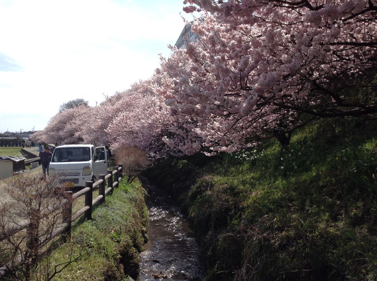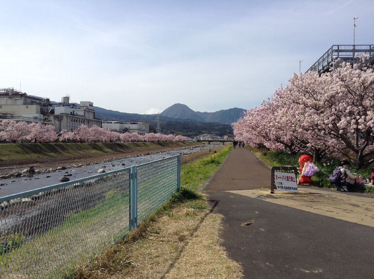 松田町(松田ハーブガーデン)の河津桜まつりが終わるとハーブガーデンの眼下を流れる酒匂川対岸の南足柄市は、「春めき桜」の見ごろをむかえています。