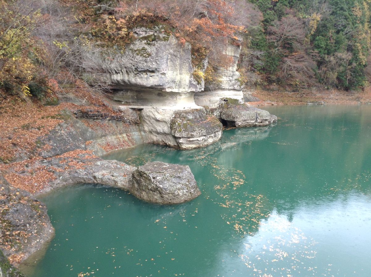 1943年(昭和18年)、河食地形の特異例として国の天然記念物に指定されている。一帯は第三系凝灰岩、凝灰角礫岩、頁岩などが互い違いになっており、その軟岩部が長年の歳月による侵食と風化の作用によって形成された柱状の断崖である。一帯は樹木に覆われており、新緑や紅葉の頃は一際美しい。